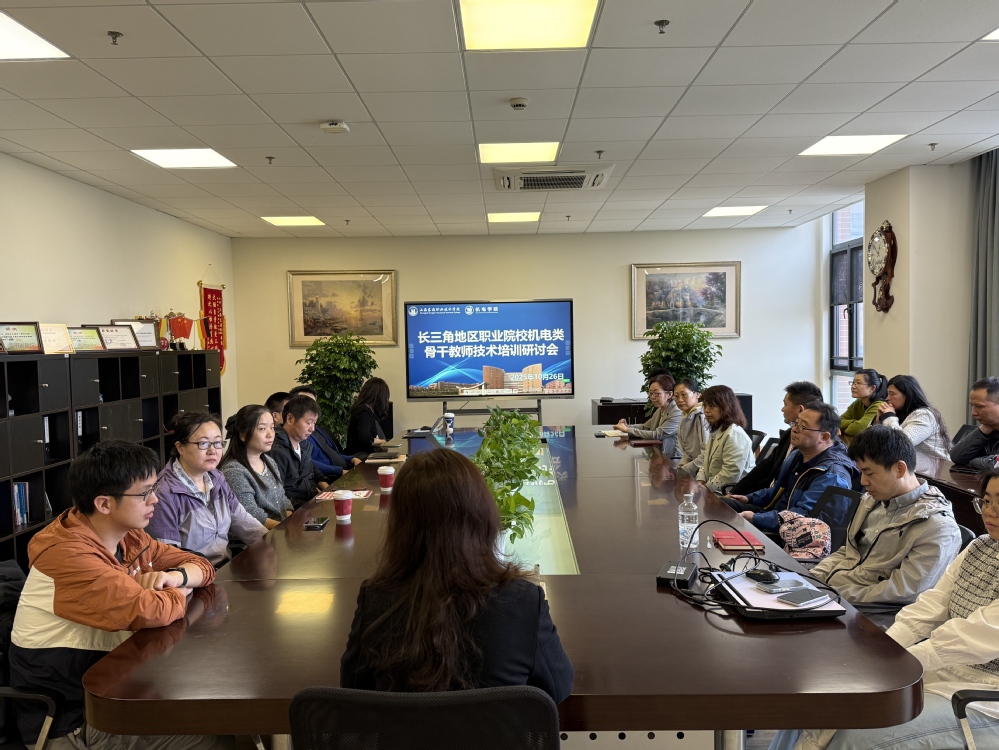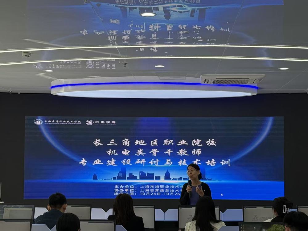 为深入贯彻落实国家关于推动长三角一体化高质量发展和现代职业教育体系建设的战略部署,提升区域职业院校机电类专业教师的“双师”素养与前沿技术应用能力,上海东海职业技术学院机电学院依托上海市民办高校教师专业发展中心东海学院分中心、国家示范性智能制造虚拟仿真实训基地,于10月24日至10月26日成功举办了为期3天的“长三角地区职业院校机电类骨干教师技术培训”。参加本次培训教师来自上海、江苏、浙江等职业院校50余人。东海学院领导非常重视本次培训,校长贺瑛教授亲临现场看望参培教师并致辞。