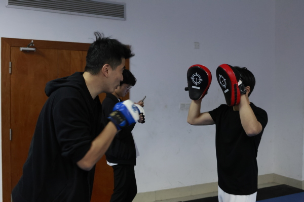 随后,全体成员参加了“动静相融·心身共愈”主题团体辅导活动,活动创新性地融合正念冥想与散打基础训练,以“动中修静”的理念引导学生平衡身心冲突,不仅提升了疗愈的趣味性,还针对现代学生常见的压力源提供实操解决方案,通过身体律动触发情感宣泄,再以静观技术整合体验,形成可持续的自我调适能力。现场,师生们积极投入,踊跃交流分享参与过程中的身心感受,普遍反馈体验独特新颖,收获颇丰,对缓解压力、提升情绪管理能力具有积极作用。
